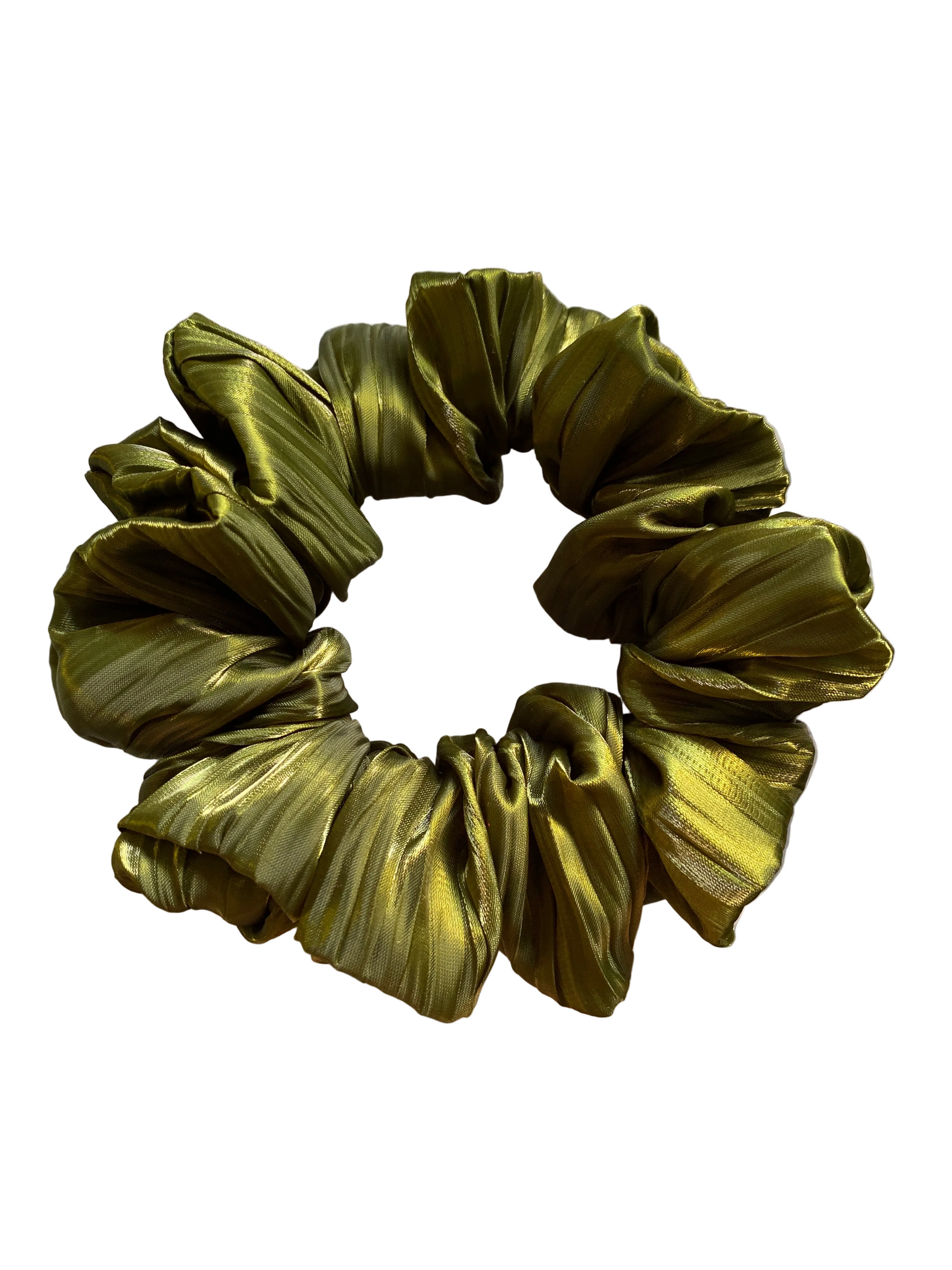 A Crepe Christmas Tree inspired scrunchie. The centre piece to childhood memories, sitting around waiting for a gift to be called out to you. Before opening new presents with excitement!