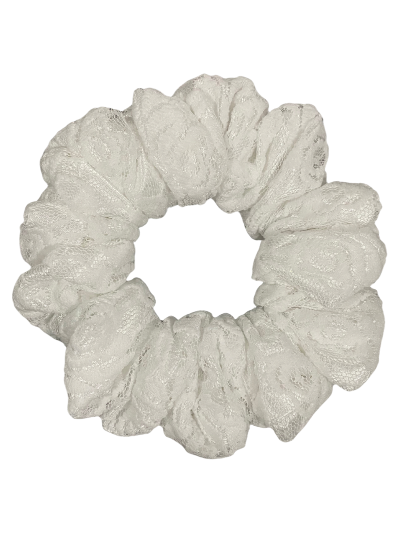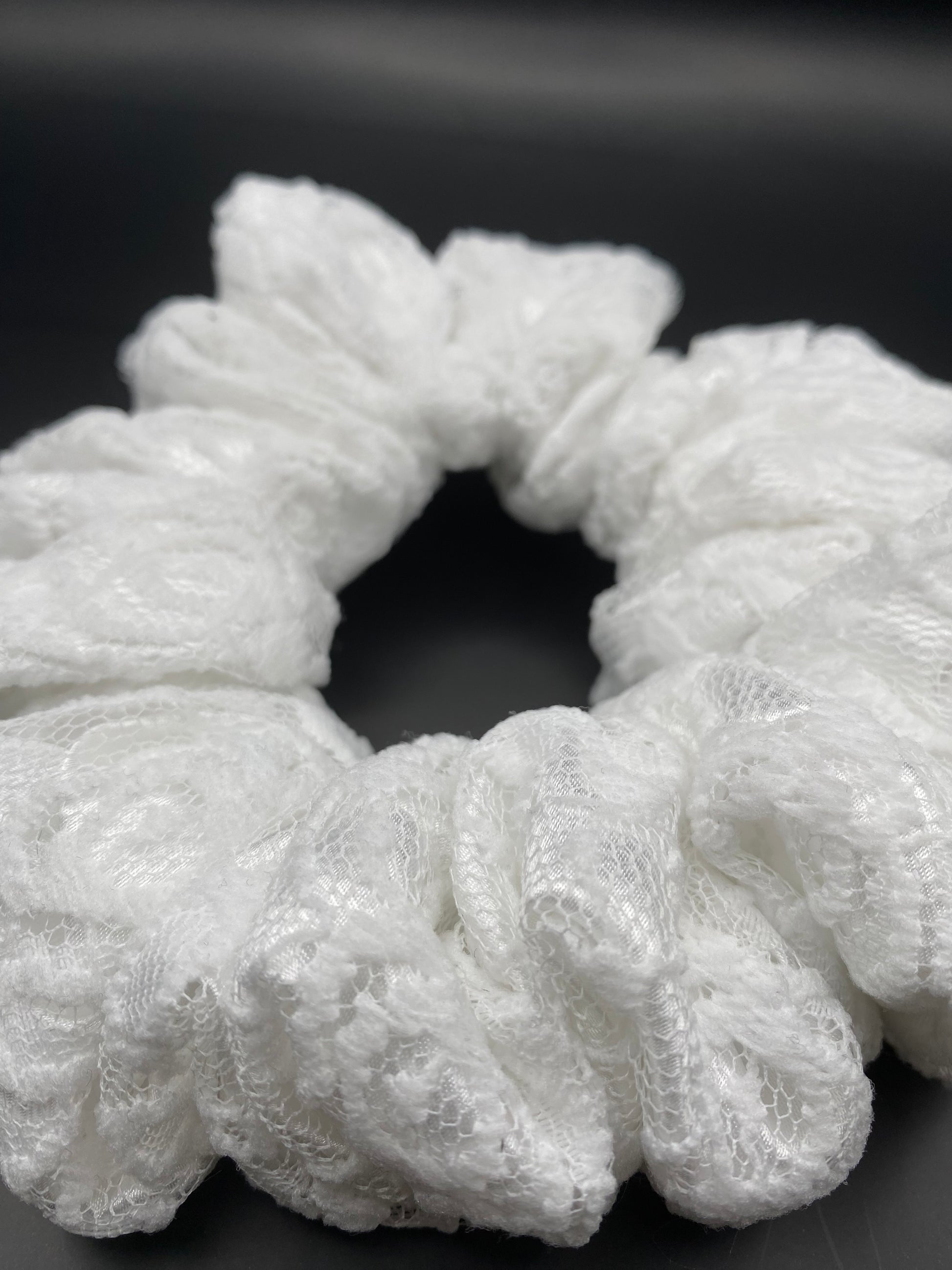 A White Satin and White Lace Scrunchie inspired by the thrill of scare acting memories, embracing all we are including the parts of ourselves we have to hide. She’s giving zombie bride, elegance and grace!