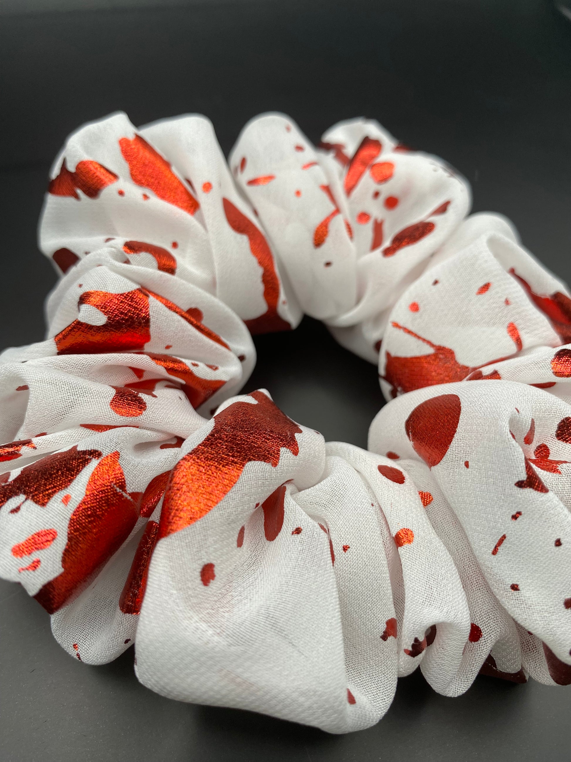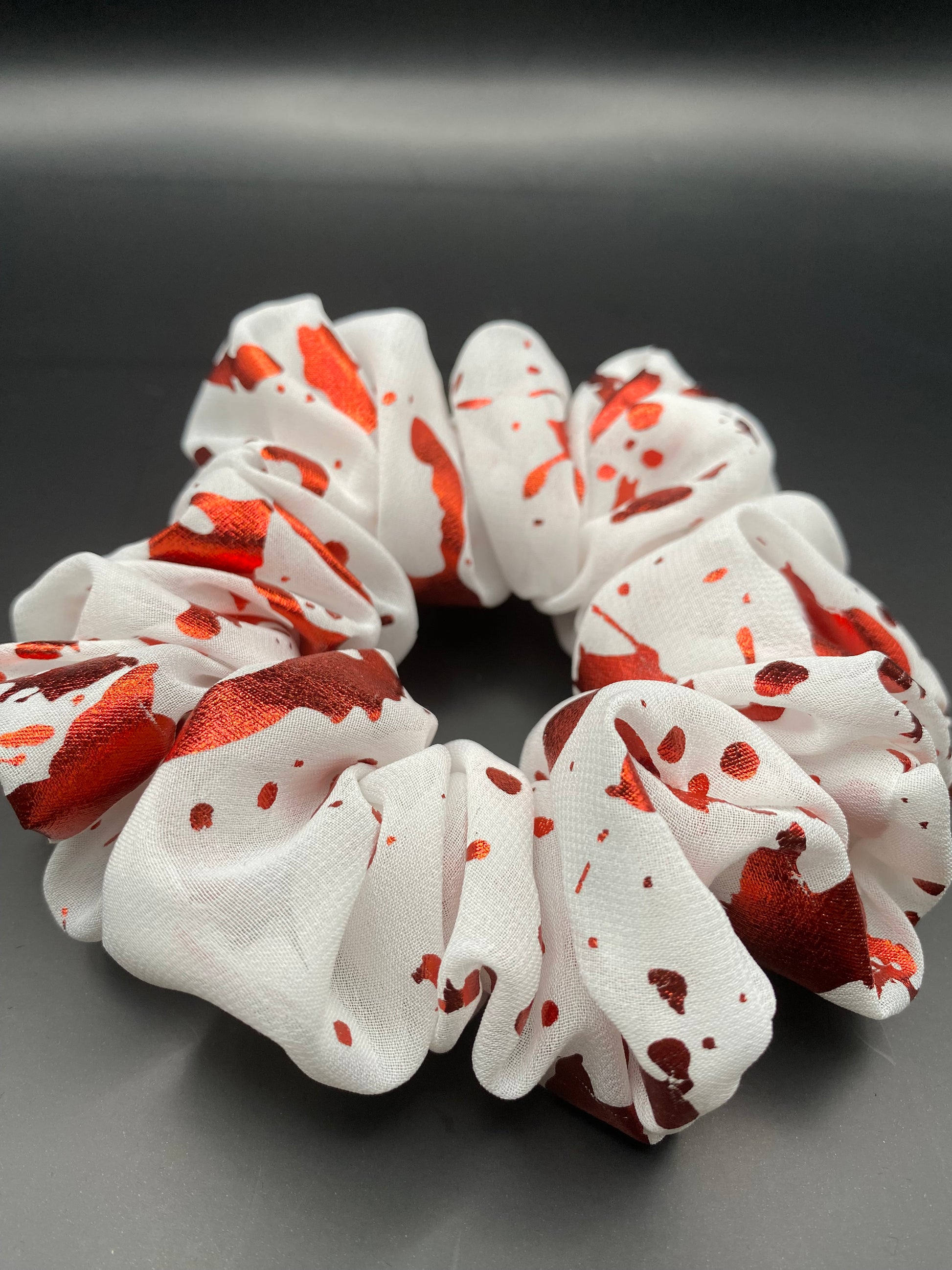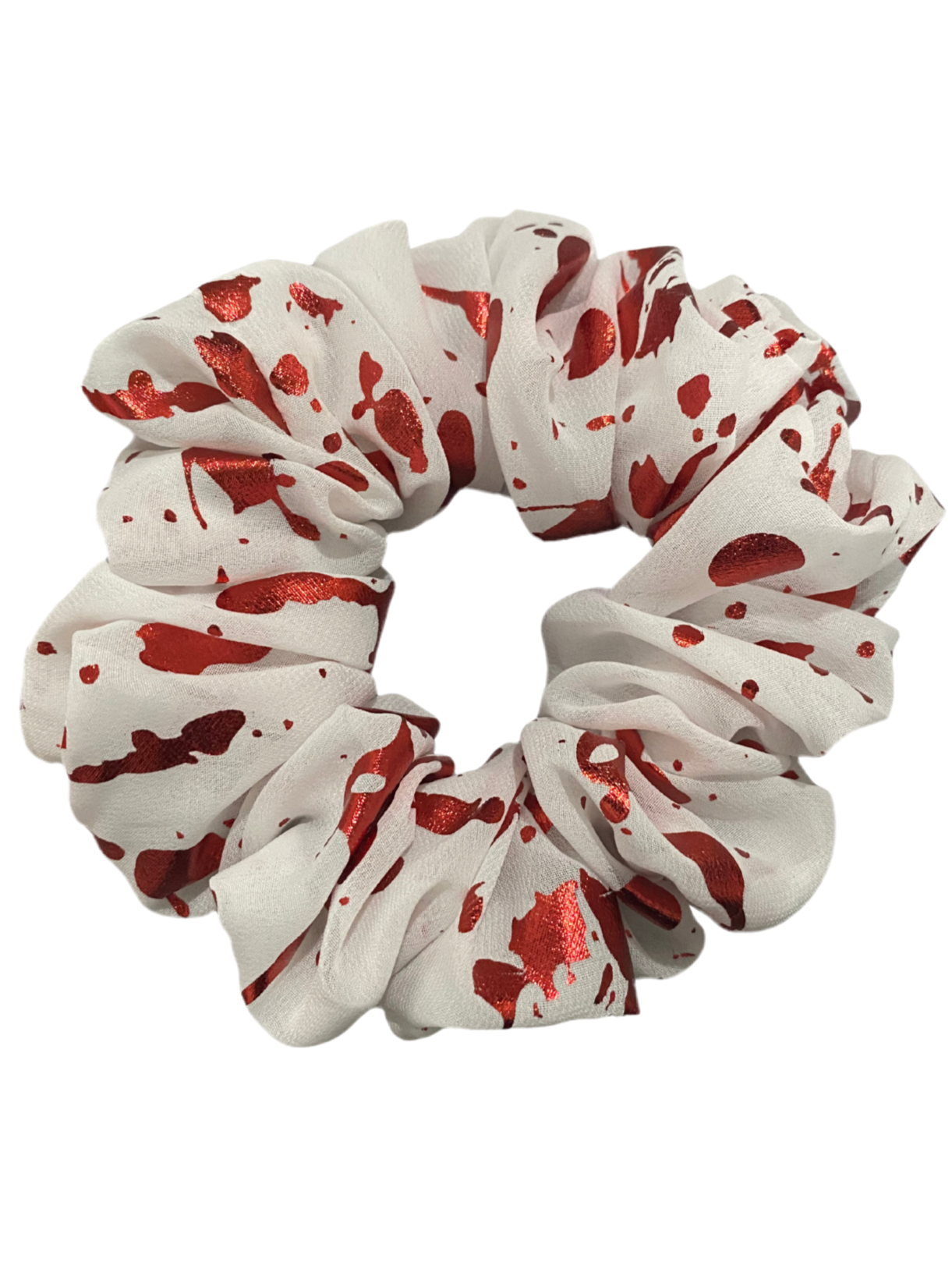 A white chiffon with red splatter scrunchie. Inspired by the one and only Jason - the King of Slasher and of course the best franchise in history - Friday the 13th. Will you be on his side or escape him?